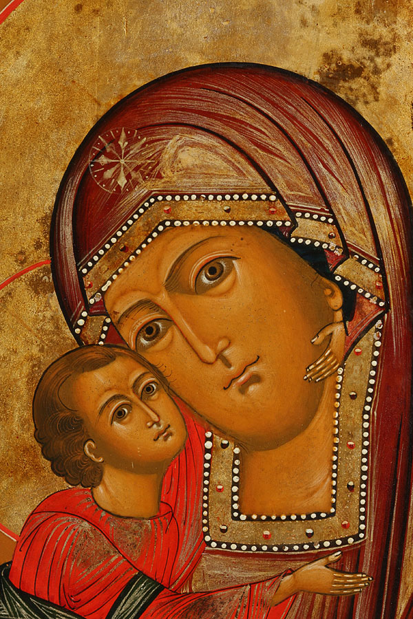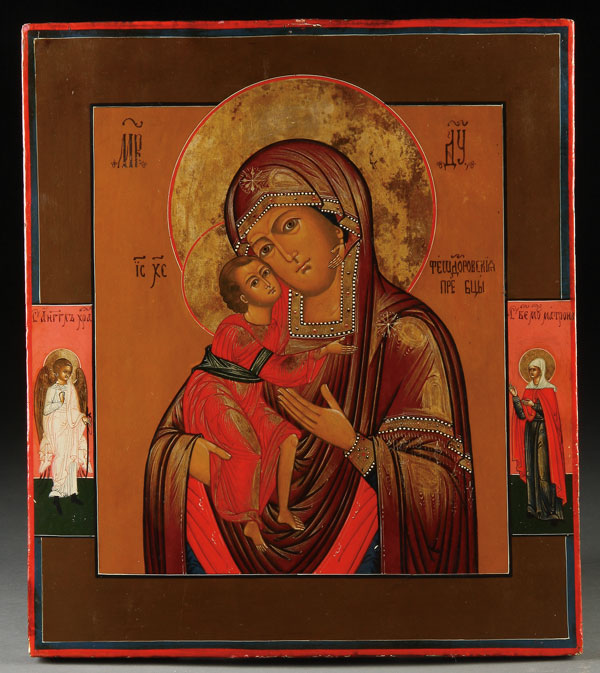 A RUSSIAN ICON OF THE THEODORE (FEODOR) MOTHER OF GOD, 19TH CENTURY. 14 inches x 12.25 inches (35.6 cm x 31.1 cm).