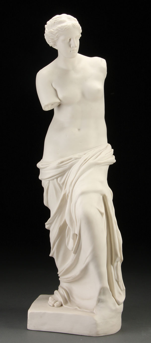 A GOOD VICTORIAN PARIANWARE "VENUS DE MILO", 19TH CENTURY.Finely cast in milky white bisque porcelain. Height 28.5 inches (72.4 cm).