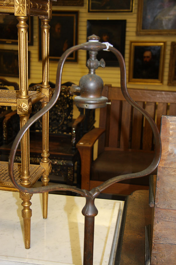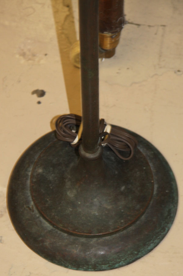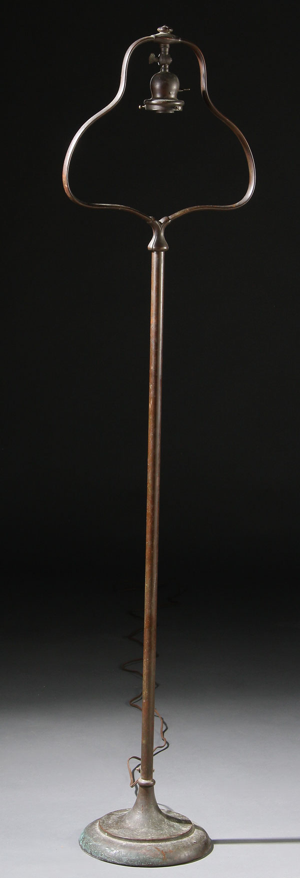 A GOOD HANDEL BRONZE "HARP" FLOOR LAMP BASE, EARLY 20TH CENTURY.With base embossed "Handel". Height 57 inches (145.8 cm).