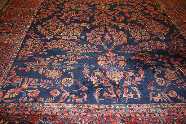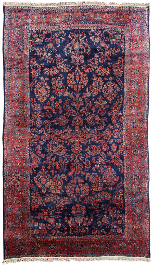 A VERY FINE HAND WOVEN "BLUE SAROUK" PALCE SIZED PERSIAN ORIENTAL CARPET, CIRCA 1930'S-40'S.Finely woven with stylized foliates on a dark blue ground within a multiple border design. 12 feet x 19 feet (3.65 x 5.79 m).