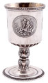 A RUSSIAN SILVER FOOTED GOBLET, ST. PETERSBURG, CIRCA 1875. The sides with three medallion reliefs depicting classical scenes related to cupid. Underside hallmarked St. Petersburg, 84 silver standard and Cyrillic makers mark A. Ya. Height 3.2 inches (9 cm).