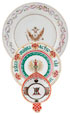 For a similar armorial plate, see Russian Imperial Style by Laura Cerwinske, Wings Books, New York, 1990, page 173 and identified as “a rare Oriental export plate circa 1785 from the Court of Catherine the Great with the Russian Imperial double headed eagle.”