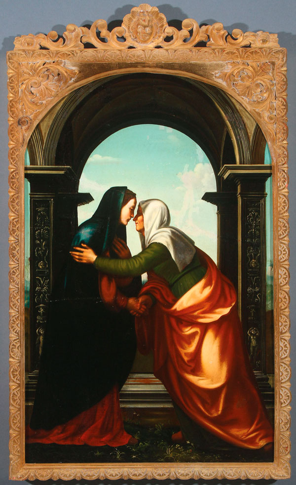 Contained in an elaborate antique carved and gilt wood frame