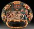 A LARGE AND IMPRESSIVE CARVED, POLYCHROME AND GILT RELIEF PLAQUE OF THE DEPOSITION, SOUTH GERMAN, 18TH CENTURY. Carved in high relief of good proportions. The top carved with heraldic shield beneath an Imperial crown resting upon ribbon-tied palms and the borders carved with laurels and set with additional heraldic devices. The lower margin with blank cartouche within a framed scrolled border. 20.5 inches x 23.5 inches (52 x 59.7 cm).
