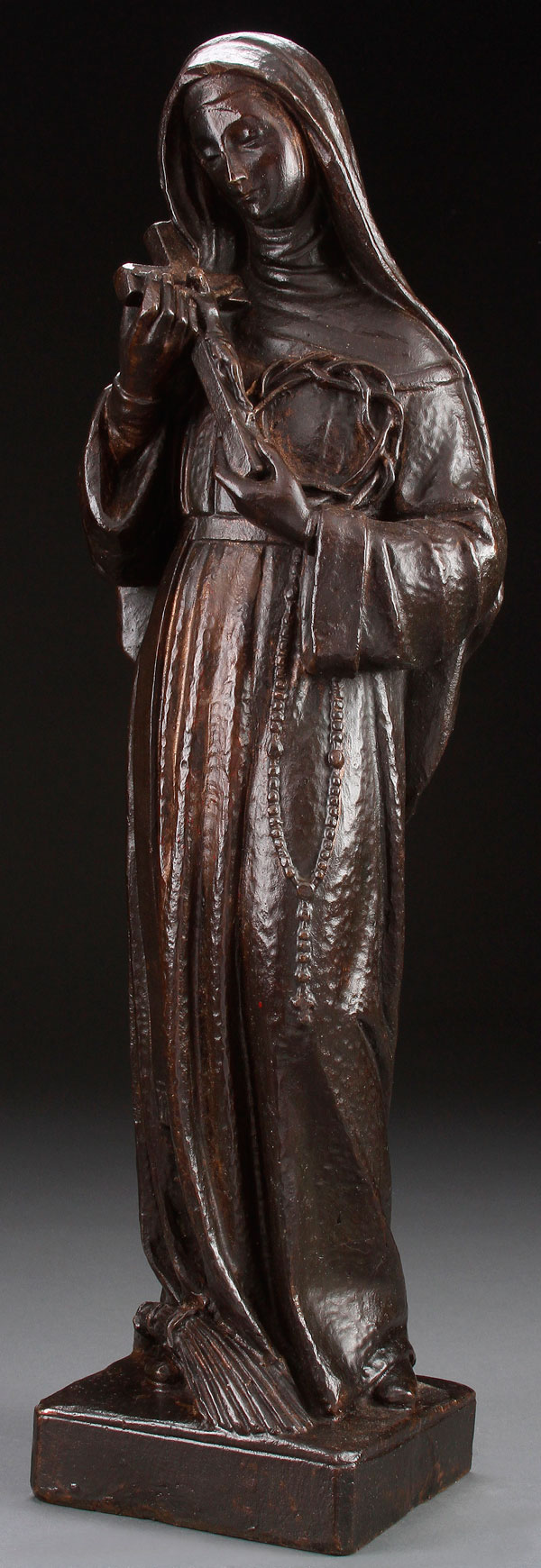 A BRONZE FIGURE OF SAINT RITA OF CASCIA, PROBABLY FRENCH, CIRCA 1920. Height 24.1 inches (61.2 cm).