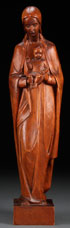 A CARVED WOOD FIGURE OF THE VIRGIN AND CHILD, GERMAN, CIRCA 1930. Signed on base E. Thomann. Height 19.5 inches (49.5 cm).