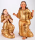 A SCARCE PAIR OF RUSSIAN CARVED POLYCHROME AND GILT WOOD FIGURES OF ADORING ANGELS, 18TH CENTURY. Carved mostly in full round, one of the figures with embroidered chasuble . Regilded and refreshed paint. Height 22 inches (55.9 cm) and 28.25 inches (71.8 cm).