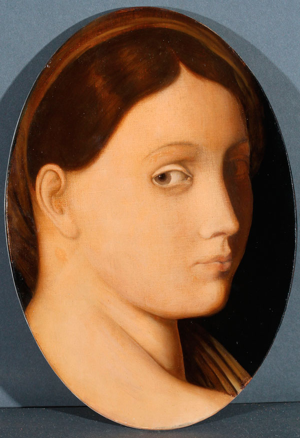 Oil on canvas laid down on oval panel