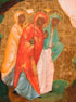 A RUSSIAN ICON OF THE RESURRECTION AND DESCENT INTO HADES, CIRCA 1800. A finely painted icon, at top center, the resurrected Christ rises out of his tomb as Roman soldiers look on. In the lower section, Christ stands atop the broken gates of Hades and grasps the hand of Adam as Eve kisses his foot. Some losses and lifting. 14 inches x 12.25 inches (35.7 x 31 cm).