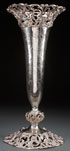 A LARGE AND IMPRESSIVE BAILEY, BANKS AND BIDDLE STERLING SILVER FLOOR VASE, CIRCA 1900. Of trumpet form with reticulated scrolled foliate flaring foot rim and chased scrolled acanthus and rose blossoms. Stamped hallmarks include logo, .925, sterling, and shape number 728S. Height 23.5 inches (59.5 cm). Weight 108 troy ounces.