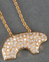 AN 18K GOLD AND DIAMOND PAVÉ "MAMA BEAR" PENDANT, CIRCA 1993. The stylized form of a bear set with 70 matching full cut diamonds, approx. vs/si clarity with a total weight of 1.12 ct., and suspended from an 18k gold chain, pendant length 1 inch (2.5 cm) total length 15.25 inches (39 cm), weight 16 grams. Stamped 18k and with Golden Bear (Vail, CO) hallmark, and edition 98/500.