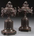 A PAIR OF FRENCH NEO-CLASSIC PATINATED BRONZE CASSOLETTES, EARLY 19TH CENTURY. Modeled as lidded urns with ornamental fruit clusters, raised on fluted black marble bases. Height 12 inches (30.5 cm).