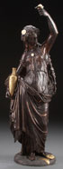 A VERY FINE NEOCLASSICAL FIGURE OF A MAIDEN HOLDING AN URN, 19TH CENTURY, FRENCH. Bronze with dark brown patina, gold highlights and later carved ivory elements. Apparently unsigned. Height 22.75 inches (57.8 cm).