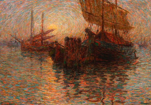 An Impressionistic Harbor Scene at Dusk-circa 1890