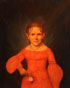Girl in Red Dress Holding Rose- circa 1840