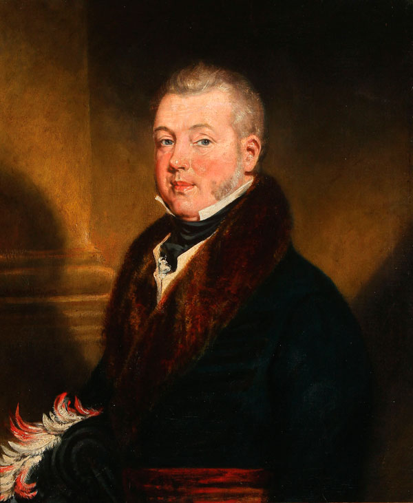 Portrait of a Gentleman (Perhaps a Statesman) with Fur Collar and Feather Cummerbund- circa 1850