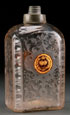 A BOHEMIAN "ZWISCHENGOLD" FLASK, 18TH CENTURY. Of rectangular form with chamfered corners, finely wheel engraved with scrolled florals and leaves surrounding inset gilt over maroon medallions depicting a cherub blowing bubbles and double flaming hearts with crown on verso. Height 8 inches (20 cm).