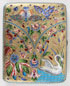A RUSSIAN SILVER-GILT CLOISONNÉ AND SHADED ENAMELED CIGARETTE CASE, DIMITRIY NIKOLAEV, MOSCOW, 1899-1908. Of rectangular form, each side of the hinged lid similarly enameled with butterflies, strawberries, floral forms, and a swimming swan with turquoise beaded border. The interior gilded. Hallmarked Moscow, 1909-1917, Cyrillic maker's mark "DN," and 84 silver standard. Length 3.8 inches (9.7 cm).