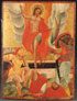 A NORTHERN GREEK OR MACEDONIAN ICON OF THE RESURRECTION, 19TH CENTURY. Painted on a gilt ground and depicting Christ rising from his tomb with Roman soldiers beneath him, and the city of Jerusalem in the distant background. 15.75 inches x 11.75 inches (40 x 30 cm).