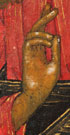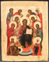 A RUSSIAN ICON OF THE EXTENDED DIESIS, MOSCOW, CIRCA 1780. At center the enthroned Christ is flanked by His mother on the left and John the Forerunner on the right. Immediately above Him, the Archangels Michael and Gabriel and further up still the Apostles Peter and Paul, and below and upper left, a gathering of additional selected saints. The borders and background cleaned down to the gesso. 16.4 inches x 13 inches (42 x 33 cm).