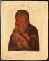 A RUSSIAN ICON OF THE VLADIMIR MOTHER OF GOD, PROBABLY 17TH CENTURY WITH LATER RESTORATIONS. 11.75 inches x 9.5 inches (30 x 24 cm).