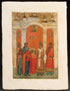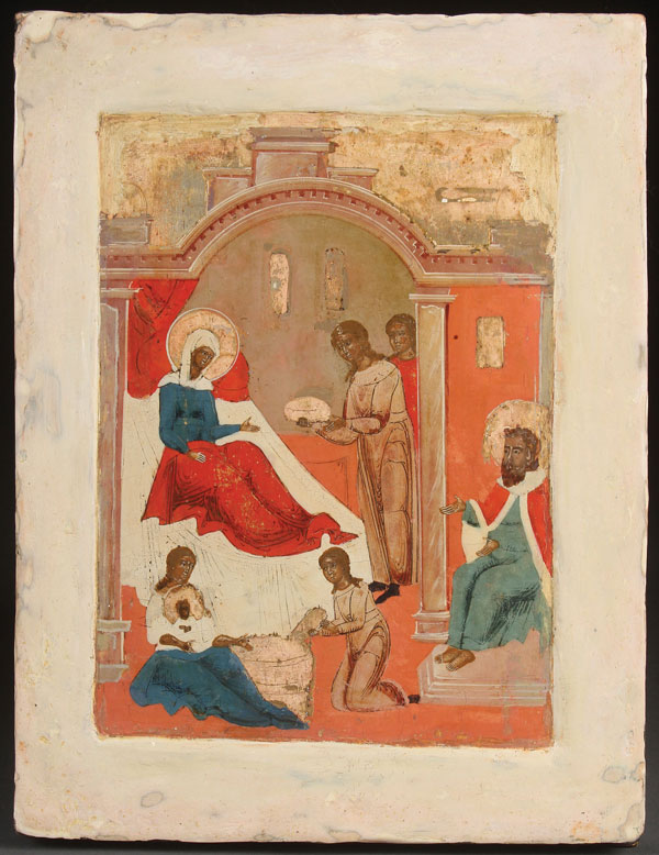 A GROUP OF EIGHT RUSSIAN ICONS DEPICTING SCENES FROM THE LIFE OF ST. NICHOLAS, 18TH CENTURY. They include his birth, baptism, consecration, and various scenes of his intercession as well as his death. Each probably transferred from another panel and slightly irregular sizes, averaging approximately 13 inches x 10.75 inches (34 x 28 cm) each.