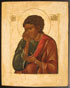 A RUSSIAN ICON OF THE ST. JOHN THE THEOLOGIAN, PROBABLY 19TH CENTURY IN THE 16TH CENTURY STYLE. 13.4 inches x 10.6 inches (34 x 27 cm).