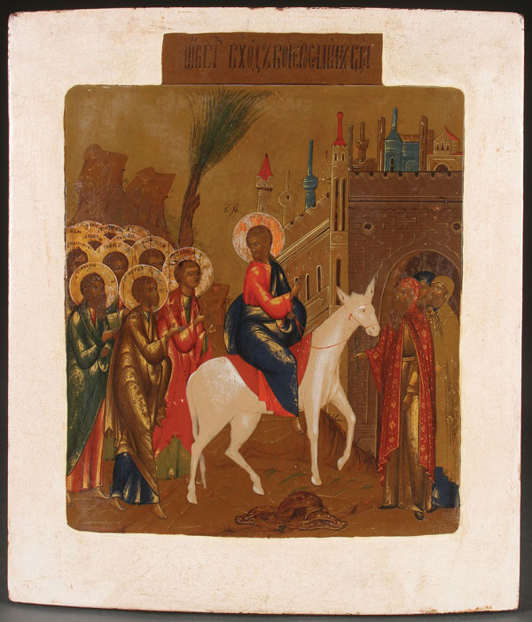 A RUSSIAN ICON OF THE ENTRANCE INTO JERUSALEM, MOSCOW, CIRCA 1890. 14 inches x 12 inches (35 x 30.5 cm).