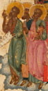 A RUSSIAN ICON OF THE POKROV MOTHER OF GOD, KOSTROMA, 18TH CENTURY. Probably transferred from an earlier panel. 12.4 inches x 10.25 inches (31.5 x 26 cm).