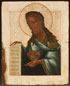 A RUSSIAN ICON OF ST. JOHN THE FORERUNNER, 19TH CENTURY. Here John holds a diskos containing the nude infant Christ, symbolizing the lamb of God of the Eucharist. He holds a scroll with text adapted from John 1:29, "I saw and witnessed concerning him, behold the lamb of God, which takes away the sins of the world...." This text is followed by the words of Matthew 3:2, "Repent ye: for the kingdom of heaven is at hand...." 21 inches x 16.8 inches (53.5 x 43 cm).