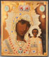 A LARGE AND IMPRESSIVE RUSSIAN ICON OF THE KAZAN MOTHER OF GOD, 19TH CENTURY. Here the Mother of God is painted with a replica of the jewel-encrusted gold riza which adorned this particular wonder-working Kazan image (icon) belonging to the Romanov family and as formerly displayed in the Kazan Cathedral in St. Petersburg in the 19th century and which after the Revolution was kept in the St. Vladimir Cathedral in St. Petersburg. 21 inches x 17.75 inches (53.5 x 45 cm).