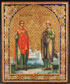 A RUSSIAN ICON OF PANTELEIMON AND THE APOSTLE SIMON, MSTERA, 1890. Finely painted within a gilt incised arched field, the foreground in distant monastery, delicately rendered, and shaded in tones typical of icons from Mstera workshops. 7 inches x 5.9 inches (18 x 14.5 cm).