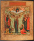 A RUSSIAN ICON OF THE ASCENSION OF THE LORD, VLADIMIR PROVINCE, CIRCA 1890. Colorfully painted on a gilt ground, here the Apostles gather together with the Mother of God as Christ ascends into heaven accompanied by two angels. 12.25 inches x 10.5 inches (31.5 x 26.7 cm).