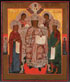 A RUSSIAN ICON OF THE DIESIS, ABOUT 1800. At center the enthroned Christ, on the left the Mother of God and on the right John the Forerunner. Behind them the Archangels Michael and Gabriel. The borders painted with two family saints. 17.25 inches x 14.25 inches (44 x 36.5 cm).