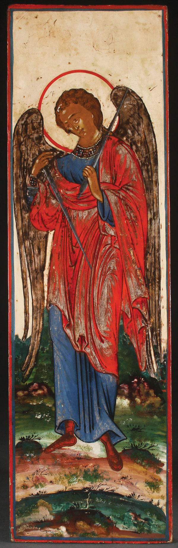 A RUSSIAN ICON OF THE GUARDIAN ANGEL, 19TH CENTURY. 28.5 inches x 8.75 inches (73 x 22.2 cm).
