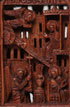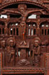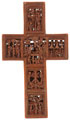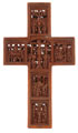 A VERY FINE RUSSIAN DOUBLE-SIDED CARVED WOOD CRUCIFIX, 18TH CENTURY. Exquisitely carved in miniature and depicting the 12 major Feast Days, each identified by their Slavonic title. The front of cross carved at center with the Crucifixion surrounded by various feast days including at top the Ascension and on the left the Dormition and on the right the Entry Into Jerusalem. Below, the Raising of Lazarus and further down still the Descent of the Holy Spirit. The verso carved equally as well depicting the Annunciation, the Baptism, the Nativity, the Meeting in the Temple, the Transfiguration and the Resurrection. Height 3.75 inches (9.5 cm).