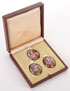 A CASED SET OF EXQUISITE ROSTOV ENAMELS DEPICTING SCENES OF THE PASSION, 18TH CENTURY. A group of three finely painted oval enamels depicting the Scourging at the Pillar, the Crowning of Thorns, and Ecce Homo. Contained in a custom made velvet and silk-lined leather covered case. Each icon approximately 1.3 inches (3.5 cm). Together with two later Rostov enamels mounted as pendants and each with suspension loop, including the Scourging at the Pillar and the Resurrection. Greatest length 1.6 inches (4 cm).