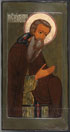 A LARGE RUSSIAN ICON OF THE VENERABLE SAINT SAVVATIY SOLOVETSKIY, 17TH CENTURY. Painted in somber colors against a green ground. Likely from the left side of a significant size iconostasis, probably reduced on the bottom otherwise in very good condition. 35 inches x 18.5 inches (89 x 47 cm).