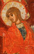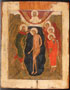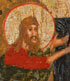 A PROVINCIAL RUSSIAN ICON OF THE BAPTISM OF CHRIST, NORTHWEST RUSSIAN, CIRCA 1600. At top center God the Father looks down upon His highly favored son who stands in the Jordan River as John the Forerunner baptizes Him and as angels of the Lord look on from the river bank at left. The panel reduced (thinned). 20.25 inches x 16.25 inches (51.5 x 41 cm).