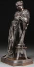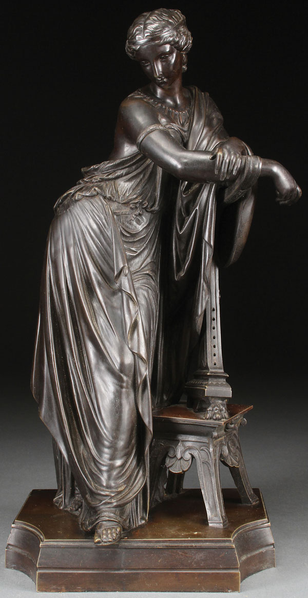 A FRENCH BRONZE OF THE ALLEGORY OF MUSIC, 19TH CENTURY. With dark brown patina and inscribed on base "T*2694332" and "L852." Height 18.25 inches (46.75 cm).