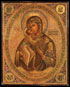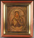A FINE AND IMPORTANT SIGNED AND DATED ICON OF THE FEODOROVSKAYA MOTHER OF GOD, JOSEPH ANDREEVICH PANKRUISHEV, 1914. Finely painted against a gilt incised ground within an oval cartouche is the Feodorovskaya Mother of God. Immediately beneath her in an arched reserve a dedicatory inscription reading "In commemoration of 300 years of the royal house of Romanov." In the upper left and right corners within circular medallions the standard Greek abbreviation for the Mother of God, and in the lower left corner within a reserve the code date of 1613 and in the lower right corner the date 1913 representing the dates corresponding to the Romanov tercentenary. In the oval band surrounding the Mother of God is inscribed the "Royal Psalm," Psalm 20, "O Lord, the king shall rejoice in your strength; and in your salvation he shall greatly exalt. You have granted him the desire of his soul, and have not withheld from him the request of his lips. For you have prevented him with blessings of goodness: you have set upon his head a crown of precious stone. He asked life of you, and you gave him length of days for ever and ever. His glory is great in your salvation: you will crown him with glory and majesty. For you will give him a blessing for ever and ever." The verso with hand-painted dedicatory inscription, "To his right reverence Anatoliy, Bishop of Tomsk and Altai, In commemoration of his coming to the Tomsk Eparchy, 22 August 1914; From Joseph Andreevich Pankruishev." Icon: 8.75 inches x 7 inches (22 x 18 cm). Contained in a later gilt-lined glazed wooden kiot.