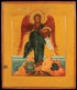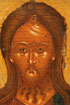 A FINE RUSSIAN ICON OF ST. JOHN THE FORERUNNER, MSTERA, CIRCA 1890. Here John is shown as a winged angel of the wilderness holding a salver which contains his head. He delivers a blessing with his right hand, and in his left hand he holds a scroll which begins "Repent ye, for the Kingdom of Heaven is at hand," (Matthew 3:2). The wings derive from the double meaning of the Greek word used to describe him in Mark 1:2 - Angelos, meaning both messenger and angel. John is often called a "Heavenly Man" and "Earthly Angel" in Orthodoxy. At his feet is shown a small tree with an ax cutting into it, illustrating Luke 3:9, "And now also the axe is laid unto the root of the tree..." The distinct landscape with highly stylized vegetation and stippled background are all classic elements of icons created in the village of Mstera or those Moscow workshops that employed iconographers trained there. The upper border with gilt Slavonic inscription reading, "Holy John the Forerunner." 12.25 inches x 10.6 inches (31 x 27 cm).