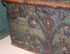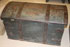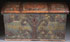 A VERY FINE NORWEGIAN WOOD AND CUT IRON DECORATED TRUNK WITH ROSEMALING, DATED 1832. Painted in the Telemark style, the front panel with polychrome florals on a dark green ground, overlaid with an elaborate cut iron lock plate with four spreading coils and applied iron letters "BSDN," flanked by spade form iron corner brackets below a fully decorated domed lid with wrought iron strap hinges the full width. The front facade inscribed with "Brile Samsons datter Nros 1832." Height 22.5 inches (57 cm), width 39.75 inches (101 cm), depth 21 inches (53.5 cm).