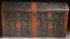 A LARGE EARLY 19TH CENTURY NORWEGIAN WOOD TRUNK WITH ROSEMALING. In the Telemark style, inscribed "K.F.D.D." and dated 1825 within large scrolled acanthus leaves and foliates on a dark green ground. Length 50 inches (127 cm). Height 27 inches (68.5 cm).