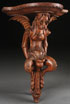 A LARGE FIGURAL CARVED WALNUT WALL BRACKET OF A GROTESQUE WINGED GRIFFIN, GERMAN OR AUSTRIAN, 19TH CENTURY. Well carved in good detail with original finish. Length 17 inches, width 11.5 inches (43 x 29 cm).