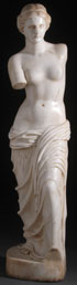 A LARGE AND IMPRESSIVE CARVED MARBLE FIGURE OF VENUS DE MILO, 19TH CENTURY. Finely carved after the original in the Louvre. Height 55.75 inches (141.6 cm).