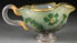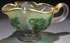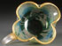 A DAUM NANCY FRENCH CAMEO ART GLASS AND SILVER MOUNTED HANDLED SAUCE, EARLY 20TH CENTURY. Of pinched quatrefoil form in gray glass with internal lemon shading overlaid in emerald green and cut with floral blossoms and leaves accented in gilt. Raised on an embossed silver foot rim. Inscribed "Daum Nancy" with Croix De Lorraine. Length 7.625 inches (19.3 cm).