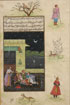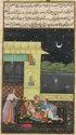 AN INDIAN MINIATURE PAINTING, PROBABLY RAJASTHAN, INDIA, EARLY 19TH CENTURY. Of a ruler with consorts on moonlit terrace, the wide offset margins with attendants, leopard and other animal forms. Dimensions, 13.5 inches x 9 inches (34.2 x 25.8 cm). (Unillustrated)