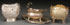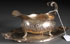 AN ENGLISH AND CONTINENTAL SILVER HOLLOWWARE GROUP, 19TH CENTURY. Comprising a floral and bird repoussé tea caddy, probably William Comuns, 1888, a French sauce tureen and attached undertray with scalloped decoration, stamped "C. Boin" and with minerva head (.950) and a silver-gilt footed sugar bowl decorated with cupids and florals in cartouches stamped with Hana style marks. The largest height 5 inches (12.5 cm). Weight 37.96 troy oz.