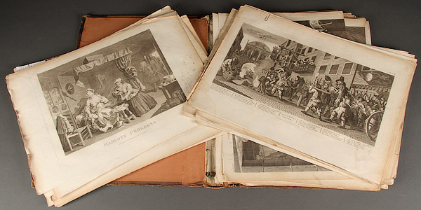 A GROUP OF 53 ENGRAVINGS, WILLIAM HOGARTH (BRITISH 1697-1764), PRINTED BY THOMAS COOK (BRITISH 1744-1818). Comprising a "Mr. Garrick in the Character of Richard III," "An Election Entertainment", "Southwalk Fair" and "Dr. Benjamin Hoadly, Lord Bishop of Winchester", also six Harlot’s Progress engravings, seven works from Samuel Butler’s Hudibras and many others, each approximately 16 inches x 22 inches (40.6 x 55.9 cm) together with 117 vintage book engravings depicting a range of subjects, 1 inch x 2.4 inches (2.54 x 6.4 cm) to 6 inches x 4.75 inches (15.2 x 12.1 cm).